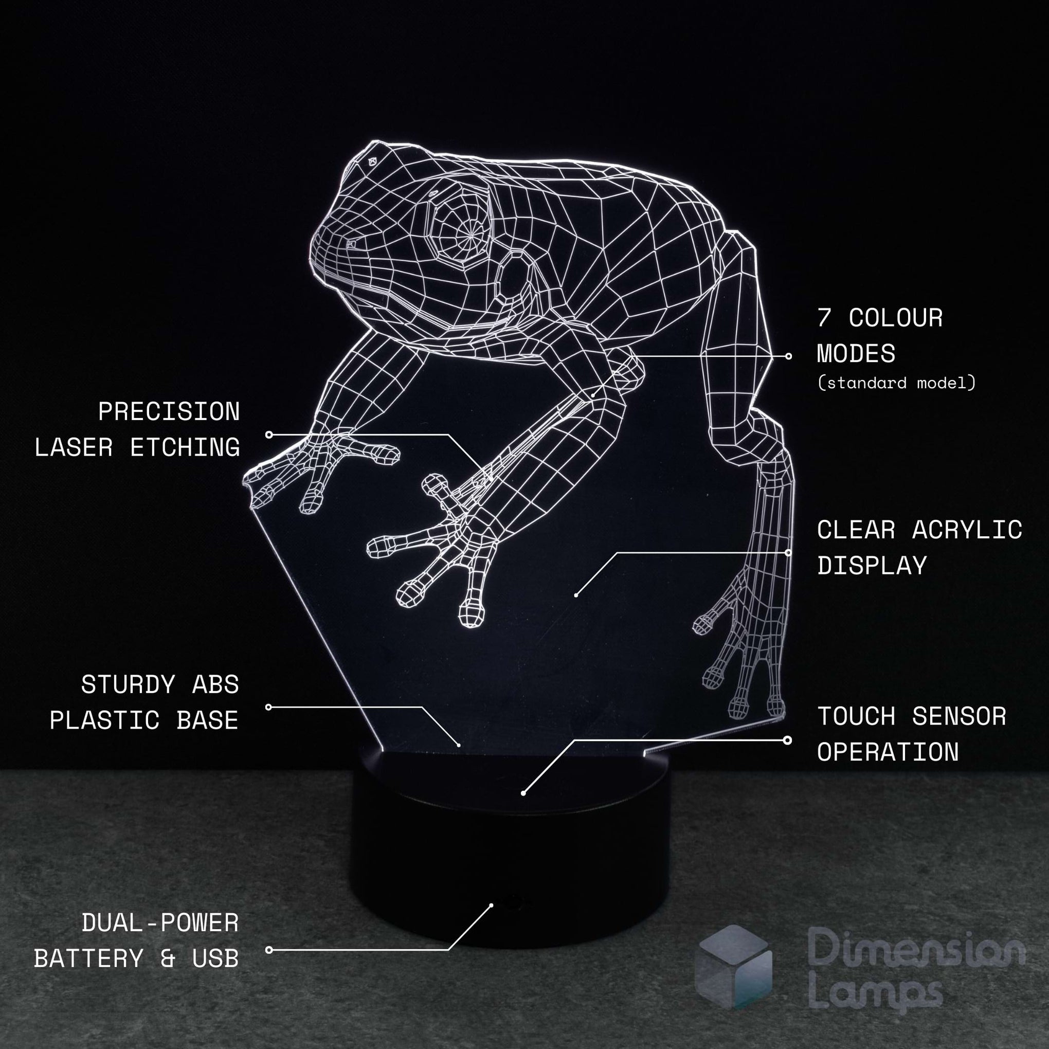 Add a nature-inspired touch with the Frog LED 3D Illusion Lamp. The wireframe design creates a 3D illusion of a tree frog in a natural pose. Use it as a night light, desk lamp, or placed near a terrarium as a gentle display light. A thoughtful gift for young frog lovers and budding wildlife enthusiasts.